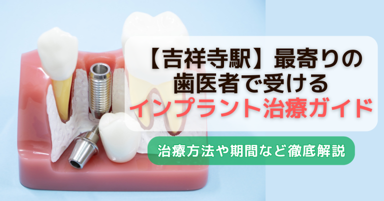 この記事では吉祥寺駅周辺でインプラント治療を検討している方に向けて、歯科医院の選び方・治療の流れ・費用の目安・注意点などをわかりやすくまとめました。インプラントについてご自身で理解し、安心して通える歯科医院を見つけましょう。